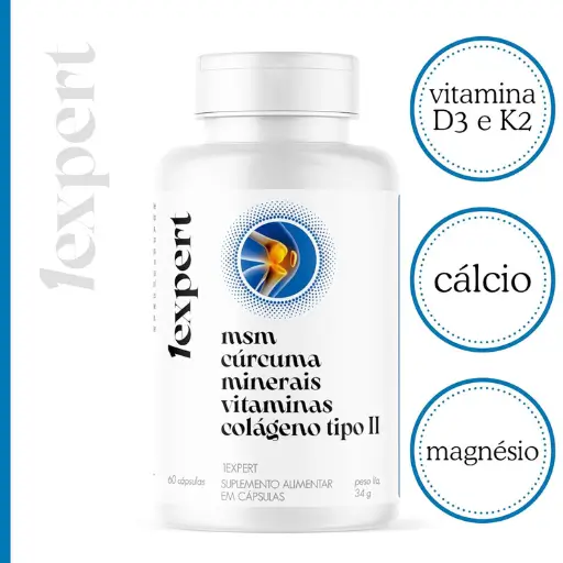 Se você busca mais equilíbrio, energia e bem-estar na rotina, esse suplemento é o aliado certo. A fórmula da 1EXPERT® combina MSM, Cúrcuma, Colágeno Tipo II, Vitaminas D3 e K2 e minerais essenciais que ajudam a cuidar do corpo de dentro para fora, com praticidade e qualidade.